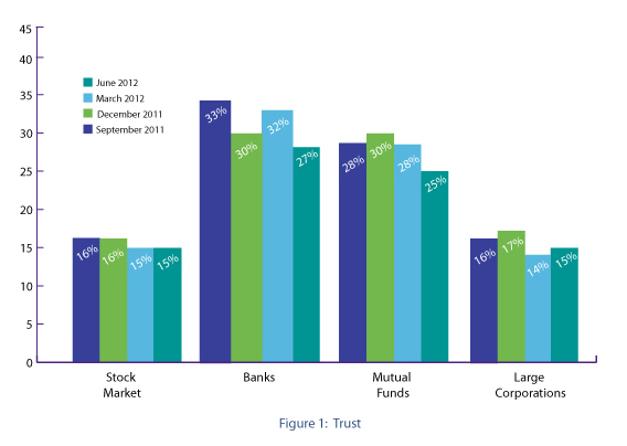 The Index measures public opinion over three-month periods to track changes in attitudes. Today’s report is the 15th quarterly update and is based on a survey conducted in June 2012. The previous survey (March 2012) showed that 22 percent of the population trusted the financial system.