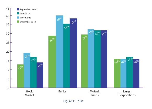 Percentage of people trusting various components that comprise the Financial Trust Index. |